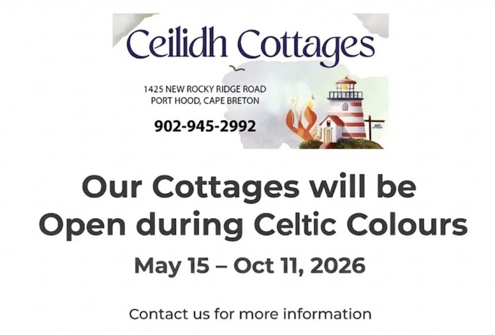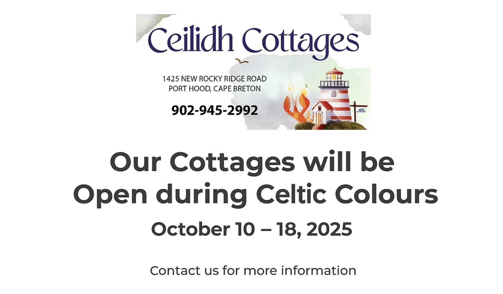 Ceilidh Cottages is located in the Heart of beautiful, West Mabou, Cape Breton Island. Our Cottages are sure to make your stay in Nova Scotia an unforgettable experience.